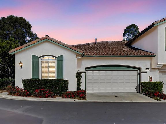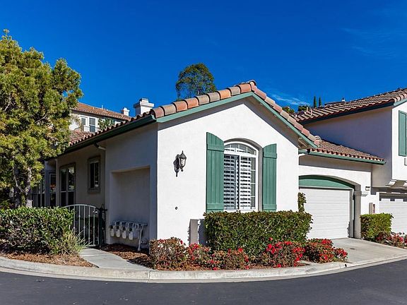 Single level home. The most popular of the 3 floorplans in Viaggio. Perfect for either a primary or second home. Lock it up and leave. This community is in very high demand within Aviara. The primary suite is what dreams are made of! Close the door to the suite and you have an extremely spacious bedroom and ensuite primary bathroom. There is a secondary bedroom in the front of the home and a den/office just down the hall. Add a pull-out sofa and you have practically another bedroom for guests. All rooms have a ceiling fan. The living room has cathedral ceilings along with the dining room. Massive amounts of sunshine come through the home making it cozy and enjoyable to prepare meals in the open kitchen or just lounge with a book in the living room. The dining room leads out through sliding doors to the firepit and one of the larger backyards in Viaggio. Plenty of room to entertain 40 or more people. So come by and see this gem and listen to the peacefulness and the birds of Aviara! You will be glad you did. You do not want to miss this one!!
