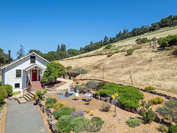 Welcome to 7129 Bennett Valley Road, a picturesque 19 acre farm-style home in the heart of Sonoma County wine country. Originally built in 1926, this charming home has been thoughtfully updated as well as fresh exterior paint while retaining its vintage character and warmth. Surrounded by vineyards and open skies, the residence features 2 bedrooms, 2 baths and a versatile loft with an additional full bath ideal for guests, a home office, or creative studio space. Central A/C cools the hot summer days. Enjoy golden-hour views across the rolling Bennett Valley landscape from the comfort of your porch, This retreat is located just minutes from world-renowned wineries, acclaimed restaurants, 5,500 acre Annadel State Park, Bennett Valley Golf Course & Sonoma County's Airport. This rural setting offers much more than just a home it's a fully equipped country property. A barn-style detached garage, workshop, garden shed and a hen house provide endless opportunities for hobby farming, equestrian use, storage, or other creative ventures. Zoned RR5, the property presents potential for future lot splits or vineyard development, making it as much an investment as it is a sanctuary. Don't miss your chance to own a piece of Sonoma County history with unlimited potential.