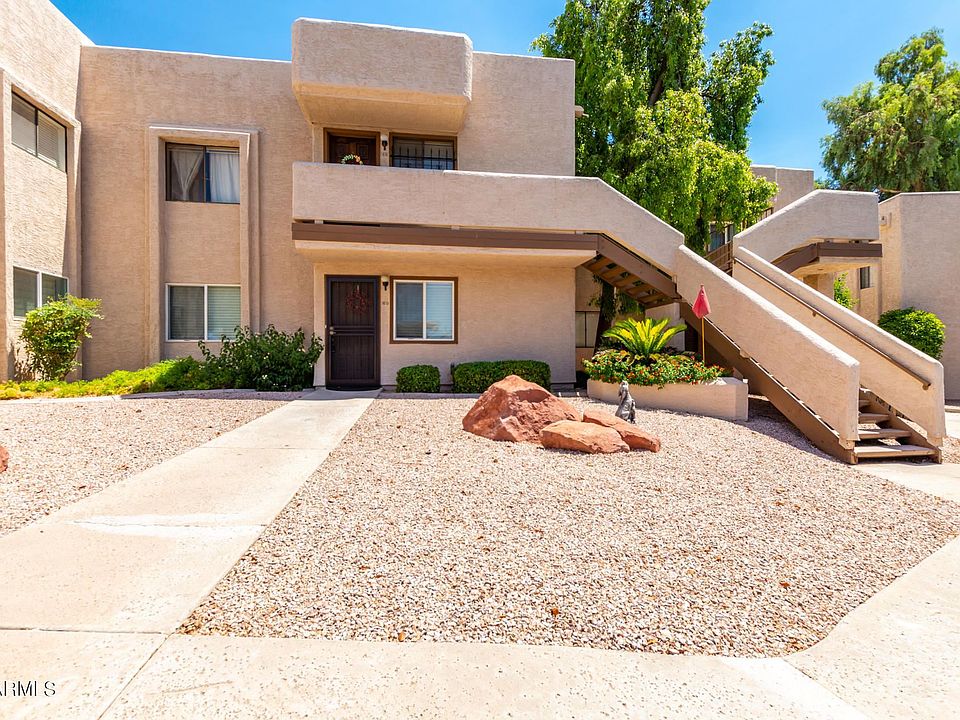 Amazing 2 Bed/2 Bath ''FURNISHED'' 1st Floor Condo. Located on 10th Fairway of Arizona Golf Resort. Enjoy View of Golf Course & Greenbelt From Patio. Community Pool & Spa Nearby. Bright Kitchen w/Stainless Steel Appliances, Rock Backsplash, Granite Countertops, Recessed Lighting & Convenient Pass thru Window to Formal Dining. Large Living Rm w/ Fireplace & Exit to Covered Patio/Locked Storage Room. North South Exposure, Wood Laminate Flooring, 3'' Shutters Plus Newer Dual Pane Low E Vinyl Windows. Spacious Master Bedroom w/ Walk-in Closet & Private Exit to Patio. Master Bath w/ Dual Sinks & a Beautiful Tiled Shower. Hall Bath Has Also Been Upgraded. Perfect Location! Tons of Restaurants, Shopping, Hospitals & Activities. Close to Major Highways - Quick Access Anywhere in Valley.