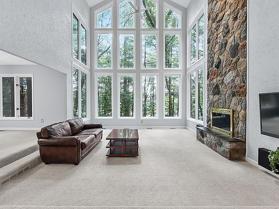 Four fireplacesTheater roomLower-level walkoutPrivate wooded acreRadiant in-floor heatingSteam shower and saunaBacklit onyx display