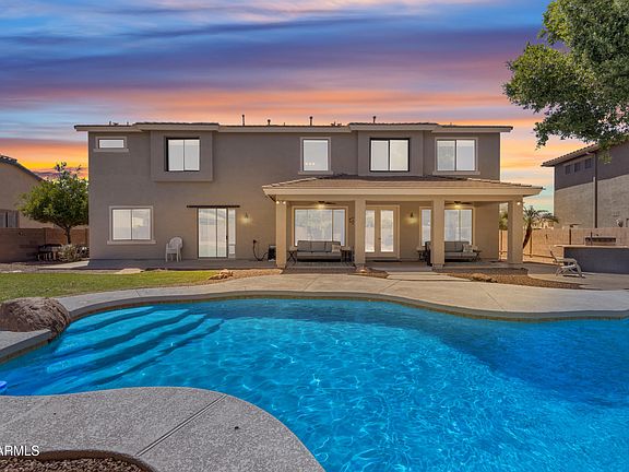 Luxury executive home in the highly desirable community of Seville Golf & Country Club. This stunning home has vaulted 20ft ceilings, dual staircases, formal dining and living areas, plantation shutters, gourmet kitchen, game room. Kitchen features Stainless steel appliances, recently remodeled with Quartz counters and enormous walk-in pantry. Recently remodeled master bath, separate tub and shower, double vanity, and huge walk-in closet. The large, rare to find, private entertaining backyard is complete with a lush 490 sq ft pebble tech pool, waterfall , multiple seating areas, outdoor gas fireplace and built-in BBQ