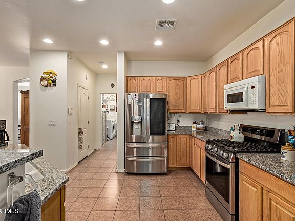 SINGLE STORY-SPLIT FLOOR-PLAN CORNER LOT Welcome home! This single-level gem offers an open layout with tile flooring throughout the main living areas and plenty of natural light. The spacious kitchen features granite counters, island, abundant cabinet space, stainless steel appliances include gas stove and a breakfast bar that flows into the living and formal dining areas. The private primary suite boasts a large bathroom with dual sinks, soaking tub, and walk-in closet. Additional 3 bedrooms are well-sized with flexible space for an office or hobby room. Step outside to a landscaped backyard with mature trees, view fencing and covered patio—perfect for relaxing or entertaining. 2-car garage with storage shelves, water softener and tankless water heater - this home checks all the boxes!