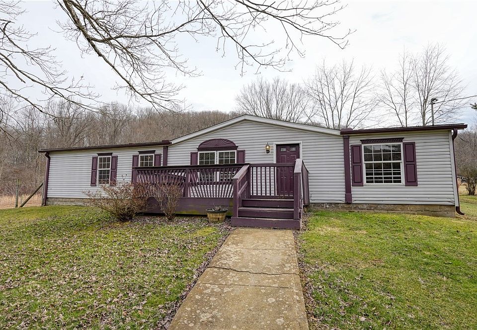 Nice country setting! This 3 BR doublewide home has some updates including updated 1/2 bath, living room/dining room area has newer flooring & covered private back deck. Spacious living space and a 3 car garage, and 5 acres complete this nice property.