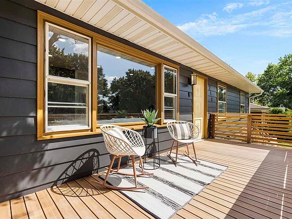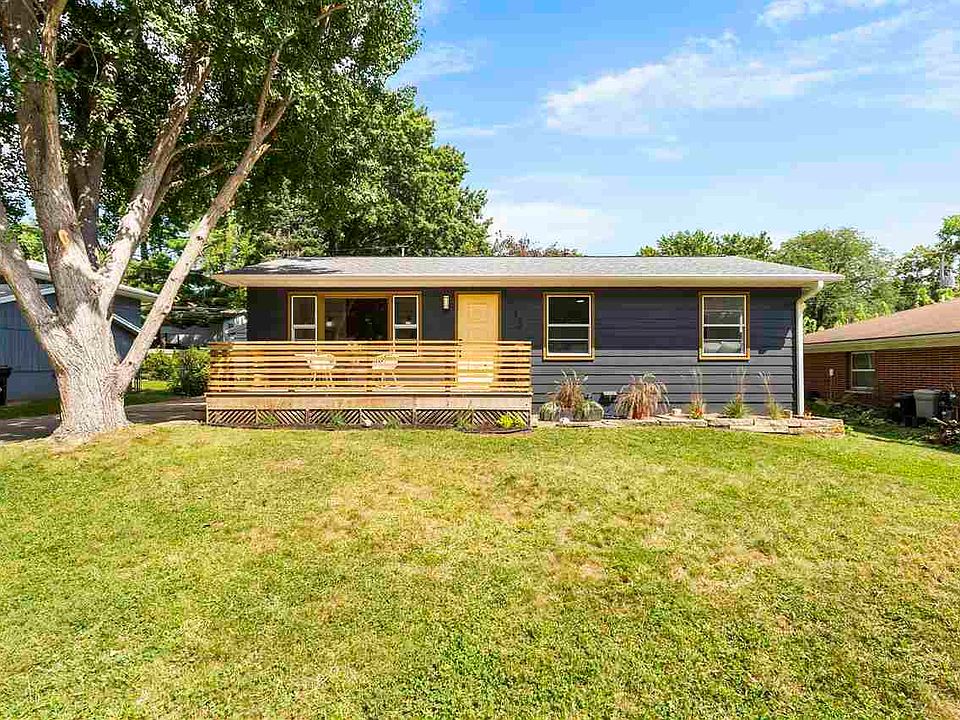 Welcome to this completely and beautifully refreshed mid-century modern ranch, nestled in the heart of Coralville. This home offers a seamless blend of classic charm and contemporary updates, providing an ideal move-in-ready living experience. Step inside to discover gleaming hardwood floors that flow throughout the main level. The new kitchen is a chef's delight, featuring new refrigerator and dishwasher, new cabinets, new countertops, a stylish tile backsplash, and open floating shelves for a modern touch. A new pantry and a charming eat-in kitchen bench create a functional and inviting space. The living room is anchored by a cozy fireplace, perfect for gathering with family and friends. The home has been thoughtfully updated with all-new lighting and fresh paint both inside and out. The lower level has been fully finished to include a non-conforming fourth bedroom and a new bathroom, providing additional living space and flexibility. A second fireplace and a dry bar with a beverage fridge in the lower level create an ideal entertainment area. Outdoor living is a breeze with a new oversized front sitting deck, perfect for enjoying your morning coffee or evening relaxation. The property also includes an oversized, one-car detached garage with a dedicated shop area, offering ample space for parking and hobbies.