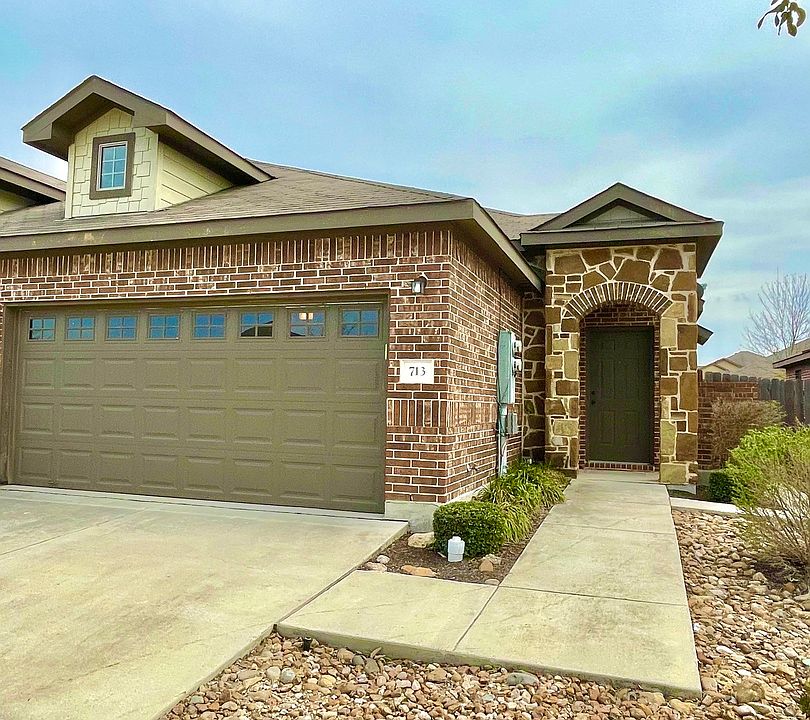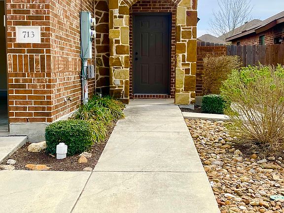 Welcome to your luxury duplex home in New Braunfels, TX! Talk about the perfect property to "House Hack!" Simply rent out both units, or rent out one side and live in the other! Unit 713 lease expires 07/20/2026, unit 717 is on a month to month lease! This luxury duplex home comes with numerous amenities and luxuries including a fenced, private backyard with a perfect patio for rest and relaxation, automatic sprinkler system, fully xeriscaped front yard, "wings" to hide trash cans, automatic garage door opener, woodgrain style tile flooring, carpet in all bedrooms, 2" faux wood blinds, beautifully tiled kitchen counter tops with a custom backsplash, kitchen island with ample storage and counter space, breakfast bar, high ceilings, spacious walk-in closets, and interior washer & dryer connections. Additional Amenities: 2 Car Garage, Pantry, Built in Microwave, Dishwasher, Double Vanities in Master bath, Large driveway. CISD Schools. Mileage to local military bases: 21.33 JBSA Randolph; 32.82 Joint Base San Antonio -Fort Sam Houston; 39.28 Brooks City-Base; 46.60 Lackland AFB. Do not miss this chance to own a piece of the beautiful city of New Braunfels!