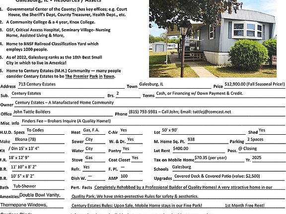 Completely Rehabbed by a Professional Builder of Quality Homes! A very attractive home in our Quality Park; We have strict-protective Rules for safety & aesthetics. Century Estates Rules: Upon Sale, Mobile Home stays in our Fine Park! 1st Month Free Rent!
