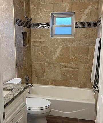 Welcome to this exquisite two-bedroom, two-bath home, where quality and comfort meet. Enjoy the benefits of refrigerated air and security screens for peace of mind. The bathrooms feature beautifully remodeled showers, vanities, and toilets, while the kitchen boasts newer appliances, granite countertops, and soft-close cabinets and drawers. Elegant tile floors flow throughout the home, complemented by custom blinds and updated ceiling fans. The inviting living area showcases a stylish stone facade on the fireplace and niches. Step into the pristine backyard, complete with turf, rock landscaping, and a custom shed. A covered patio provides the perfect space for outdoor relaxation and entertainment. Don't miss the chance to make this exceptional property your home!