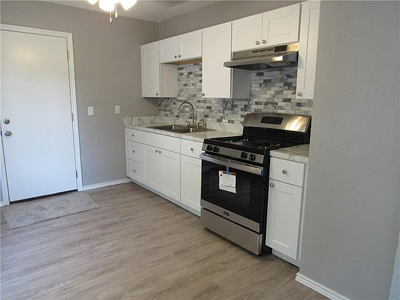 This little house has new texture and paint, counter tops, bathroom fixtures plumbing, front siding, flooring, fans and lights. Storm windows are ordered.