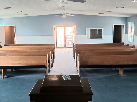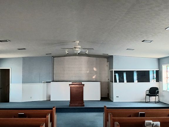 All Brick "COMMERCIAL" building on 1.4 acres with 3600 sq ft! 1800 ft main level plus lobby area and 1800 ft downstairs. Currently set up for a church with a large sanctuary, seats approximately 300, stage and baptismal on main level. Downstairs has multiple rooms along with a kitchen and large open room could be used as a fellowship hall. Paved parking lot with large sign. Men's and Women's bathrooms. Several classrooms, Sound room, Pastor's office.