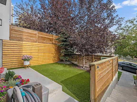 Perched above Bridgeland with city views you won’t forget, this three-storey townhome has just over 2,000 sq. ft. of living space and a layout that makes sense from top to bottom. There are three bedrooms and three and a half baths, including a top-floor primary with a walk-in closet and a double-sink ensuite. But the real star is the rooftop patio, a huge private deck with some of the best views in Calgary. It’s the kind of space that’s perfect for dinner parties, late-night drinks, or just stretching out and watching the skyline. On the main floor you’ll step in from your own low-maintenance turf front yard to a bright living room with 10-foot ceilings and a gas fireplace. The kitchen’s set up with quartz counters, a breakfast bar, pantry, beverage fridge, and stainless steel appliances, plenty of space and light for cooking or hosting. The east-facing windows have been tinted to reduce heat and keep the home comfortable year-round. Upstairs, two bedrooms share a full bath and there’s a handy laundry room. The top level is reserved for the primary suite with its 9-foot ceilings, walk-in, and spa-style ensuite. Extras worth noting: heated basement floors, in-ceiling speakers, a detached garage with a car lift for secure parking, and low condo fees that help keep monthly costs in check. It’s a solid mix of space, style, and a rooftop that really sets it apart. Book a showing with your favourite agent and see it for yourself.