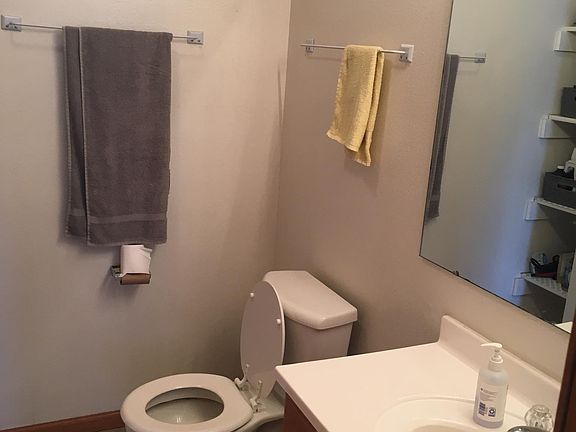 1998-Built Condominium with laminate flooring and drive under, two-car, stall garage. Parking for three vehicles. Painted, tiled with laminate flooring. Laundry includes clothes washer and dryer. Furnace, hot water heater and central air conditioning. Living room, two bathrooms, three bedrooms with closets. Kitchen includes refrigerator, stove, microwave, dishwasher and disposal. Plenty of closet space. Balcony deck off of living room, sliding door. Free shuttle bus stop in front of condo. Two blocks from downtown. 360 day lease.