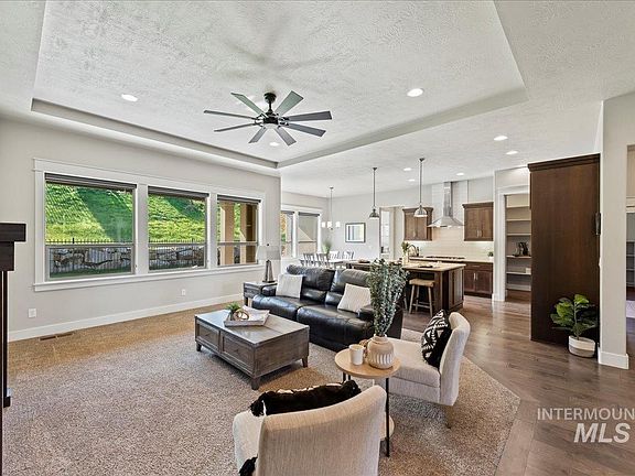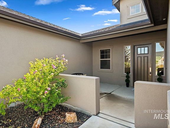 Experience elevated living in the highly sought-after Reflection Ridge community! This stunning 4-bedroom home perfectly blends elegance and comfort, offering two primary suites, three full baths and a dedicated office. A grand entry-way welcomes you into the open-concept great room where 10-ft tray ceilings and expansive windows fill the space with abundant natural light, creating a bright and inviting atmosphere. Unwind on cozy evenings by the gas fireplace, beautifully framed with tile, an alder mantle, and built-in cabinetry with floating shelves. The gourmet kitchen is the heart of the home, featuring Bosch stainless steel appliances, quartz countertops, rich Alderwood cabinetry and a spacious walk-in pantry with added electrical outlets for your coffee bar or additional kitchen space. Thoughtful design details include a smart split-bedroom layout, a custom office with built-in desks and cabinetry, and a generous laundry room with direct access from the primary closet for added convenience. Relax and entertain on the large covered patio, surrounded by beautiful landscaping and a rockery wall that provides a sense of privacy and seclusion. Residents of Reflection Ridge enjoy scenic walking paths, expansive common areas, a community pool, clubhouse, park, basketball and volleyball courts - creating the ideal setting for refined and active living.