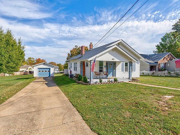You are sure to fall in love with this lovely 2bd/2ba bungalow located in the center of Fredericktown. This fabulous home boasts plenty of curb appeal and features a large front porch for that morning coffee and privacy fenced back patio for the dogs to play. The interior is gorgeous and welcomes you with beautiful luxury vinyl floors that will guide you throughout the entire home. A cozy family room features a gas fireplace for those cold winter nights. The main level also includes two large bedrooms and two full baths with one bath offering an updated relaxing beautiful soaking tub. You will have plenty of room for hosting those upcoming holiday dinners in your new dining room. You will also love the large, updated kitchen, beautiful backsplash and large pantry with custom shelving. Exterior of the home offers large back yard, patio, 1-car detached garage and storage building. Home also has partial unfinished basement with outside entry that is perfect for extra storage.