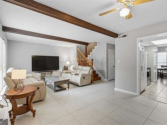 Welcome to 713 Garden View in the desirable Garden Walk community! This all-brick townhome offers 3 bedrooms, 2.5 bathrooms, and a private fenced patio-perfect for hosting friends and family or relaxing outdoors. The main level features a flowing floor plan with a welcoming foyer, spacious living room, and dining/breakfast area that opens to the kitchen. The kitchen has been beautifully updated with NEW white cabinetry, modern countertops, NEW flooring on the main level, and a pantry for additional storage. A convenient powder/laundry room, coat closet, and extra storage closet complete the first floor. Upstairs, the primary suite boasts a generous walk-in closet and private en-suite bath. Two additional bedrooms share a full hall bath, providing separation from the primary suite. Step outside to the fenced back patio with a built-in storage shed and gated access to the reserved 2-car covered carport. Guest parking is available to the side. Garden Walk is ideally located near shopping, dining, and schools, with easy access to Stone Mountain Village, Stone Mountain Park, Decatur, Emory, and Downtown Atlanta. The HOA includes water, basic cable, pool, clubhouse, trash, landscaping, and termite/pest control.