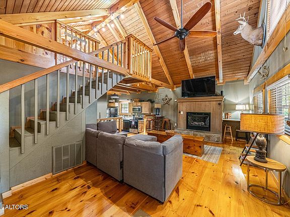 Step inside to find a warm, inviting interior with classic cabin finishes, an open living area, and large windows that frame the natural beauty outside. The gas fireplace adds comfort and charm, making it the perfect spot to unwind after a day of exploring nearby trails, attractions, or downtown Gatlinburg.