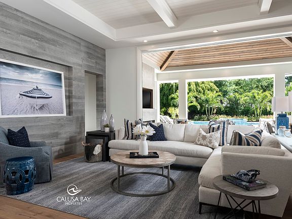 This charming beach cottage retreat is simply the coolest cottage style home you will see this season. It's casual beach living at its finest! The open concept floorplan includes a great room, club room, dining room, playroom or office, 4 or 5 BR, 4 1/2 baths all adjoining a fantastic outdoor living space with outdoor kitchen, huge resort style pool and spa, and spacious, private, beautifully landscaped yard. The chef's kitchen with custom cabinetry and large island features Wolf and Subzero appliances, and great pantry storage. The many design details and built-ins throughout the home combined with a charming casual furnishing package by Calusa Bay Design make this the best beach cottage retreat of the season. Completely remastered by Knauf Koenig Group and Calusa Bay Development, this home is sure to please even the most discerning buyer. Moments from Waterside, Artis-Naples, Mercato, and more. Pelican Bay offers 3 miles of sandy beach, 2 beachfront clubs with dining and beach service; competitive tennis and the brand-new Club Pelican Bay featuring 3 award winning restaurants, 27 holes of golf, fitness center and spa.