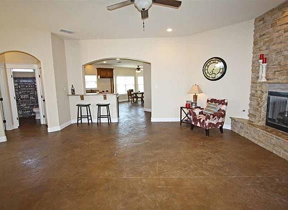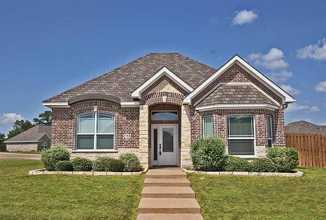 Wonderful home in Lindale ISD! You will enjoy the open design with the family room, stacked stone fireplace and concrete floors. An archway opens to the kitchen with stainless appliances, designer counter tops, island, large pantry, and opens to breakfast room. Romantic master with corner tub, sep shower and dbl walk-in closet. Side entry garage, on corner lot. There will be a future Home Owners Assoc. in Ruby Trails.