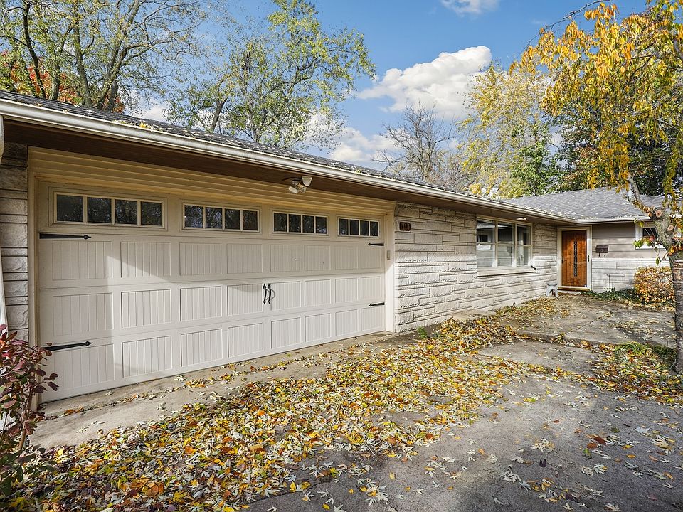 This beautifully maintained brick and stone mid-century modern ranch offers timeless style and modern updates in a quiet, established neighborhood-just minutes from shopping, dining, and other amenities. Sitting on a large, private lot surrounded by mature lilac bushes and vibrant perennials, this home provides the perfect blend of privacy and convenience. Inside, gleaming hardwood floors (refinished in 2018) flow throughout the spacious main level. The farmhouse-style kitchen, fully renovated in 2018, features GE slate appliances (new in 2019), updated cabinetry, and stylish finishes. With 3 bedrooms and 2 full bathrooms, this home offers comfortable living spaces and thoughtful design. Recent updates include new windows and appliances (2019), new furnace and water heater (2022), electrical system updated (2018). The lower level includes a partially finished basement with a crawlspace-perfect for extra storage. An attached two-car garage provides added convenience and protection from the elements. This move-in-ready home combines mid-century character with modern comfort-ready for you to make it your own. Schedule your showing today; this one won't last long!