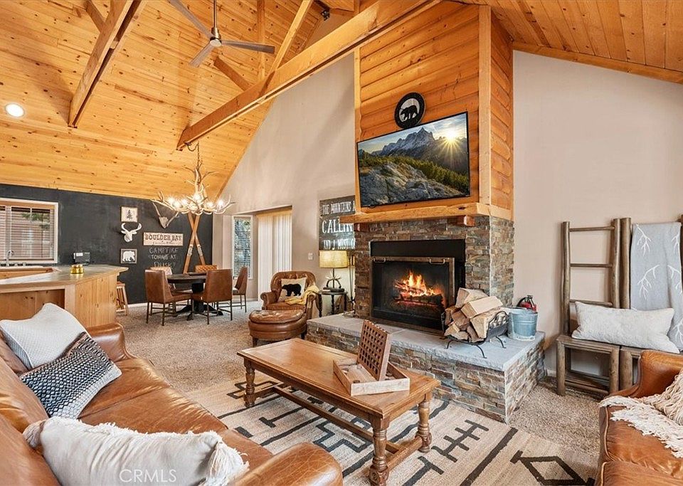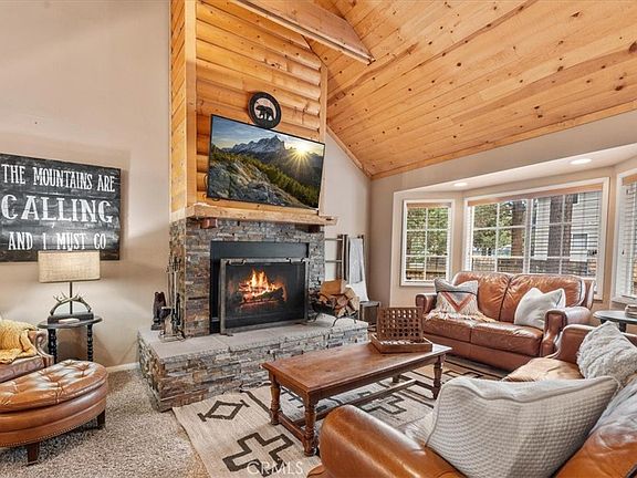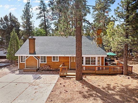 Located in the San Bernardino Mountains, this Sugarloaf cabin is perfect for your vacation getaway spot, or full time mountain living. Featuring three bedrooms and two full bathrooms on the main floor and a loft bedroom with half bathrom upstairs in approximately 1,264 square feet of living space, there’s plenty of room to bring the crew to celebrate and enjoy all four seasons on the mountain. Enter from the front door into the family living room featuring tall celings, cozy fireplace and tons of natural light. The peninsula kitchen with tile counters and breakfast bar is open to the living area and dining area with sliding door with direct access to the wraparound patio perfect for outdoor dining and barbecuing. Inside the primary suite is located at the end of the hallway and offers a walk-in closet, fireplace, and private en-suite bathroom with soaking tub and tile floors. The secondary bedrooms are good sized with mirrored wardrobe doors and located on either side of the remodeled hall bathroom with tiled walk-in shower. Parking an issue on the mountain? Not here, there are two paved, flat driveways easily fitting 5-7 vehicles. Bonus: Seller is willing to include the adjacent lot for the new owner making the lot nearly 7,000 square feet - enough room to add a garage or? Enjoy the outdoors and play a game of horseshoes or take a walk and soak in the fresh air. A single level cabin home, with tons of parking, and incredible location with proximity to Big Bear Mountain Resort and Big Bear Lake, you don’t want to miss this one. The mountains are calling, will you answer?