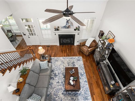 Welcome to Mill Pointe where elegance meets comfort in this beautifully appointed 4-bedroom, 3.5-bath residence. Step into a grand two-story foyer flanked by a sophisticated home office with coffered ceiling and a formal dining room, perfect for entertaining. The soaring two-story living room, anchored by a gas-log fireplace, flows seamlessly into the kitchen featuring a large island, granite countertops, gas cooktop, wall oven, pantry, and a sun-filled breakfast area overlooking the private backyard. The main-level owner’s suite is a retreat of its own, complete with double vanities, a jetted tub, separate shower, and an expansive walk-in closet with custom built-ins. Upstairs offers a spacious guest en suite, two additional bedrooms sharing a hall bath, and a bonus room over the garage. Outdoor living shines with a covered porch that opens to a fenced, private backyard ideal for gatherings or quiet evenings. This thoughtfully designed home blends luxury details with everyday function