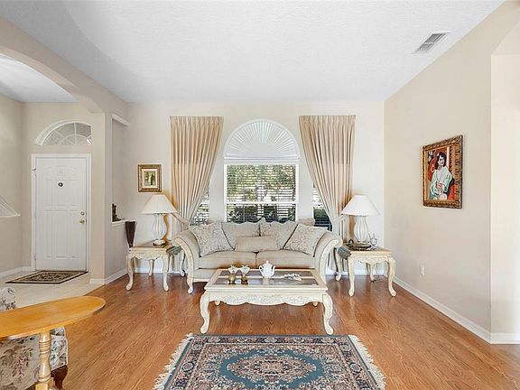 Welcome to this beautifully maintained 4-bedroom, 2-bathroom pool home nestled in a secure gated community in Deltona, offering peaceful lake views, a flexible floor plan, and exceptional indoor and outdoor living spaces. Situated on a unique odd-shaped lot, this home provides a sense of privacy and charm that sets it apart from others in the area. As you step through the front door, you're greeted by a bright and spacious split floor plan that perfectly balances openness and functionality. The formal living and dining areas flow effortlessly into the heart of the home—a comfortable family room and an open kitchen designed for both casual meals and entertaining. The kitchen features ample cabinetry, generous counter space, and a breakfast bar overlooking the family room and outdoor pool area. Tucked away from the secondary bedrooms, the private primary suite offers a tranquil retreat complete with an en-suite bathroom, walk-in closet, and stunning views of the lake and backyard. The three additional bedrooms are located on the opposite side of the home, creating an ideal setup for families, guests, or multigenerational living. A dedicated office space provides the perfect environment for working from home or managing a household, while a separate laundry room with additional storage adds everyday convenience. Step outside to your own private oasis: a screened-in pool and covered lanai area overlooking the lake—perfect for morning coffee, relaxing afternoons, or entertaining guests. This home is located in a quiet, gated community that offers peace of mind and a strong sense of neighborhood pride, all while being conveniently located near local schools, shopping, I-4, and outdoor recreation areas. Whether you’re seeking a spacious family home, a lakefront retreat, or a property with room to grow, this Deltona gem checks all the boxes.