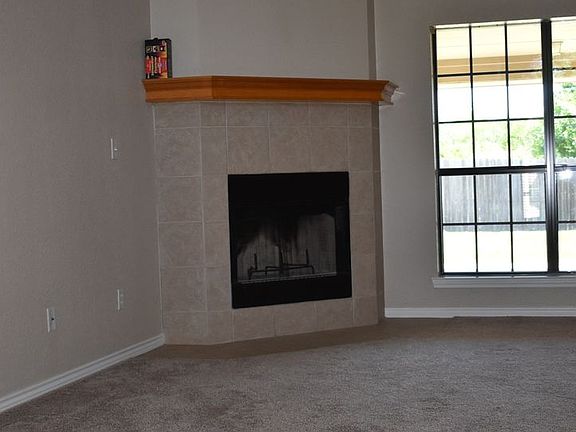 Soft taupe carpetLarge master suiteCovered back patioOak plantation blindsOak mantle