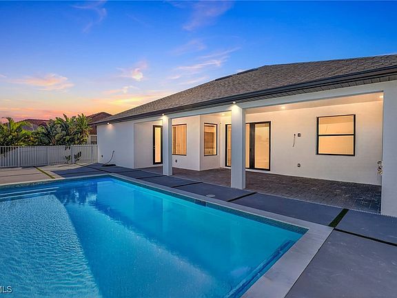 Welcome to this stunning new 4-bedroom, 3-bathroom home, where elegance meets functionality. With nearly 2,000 sq. ft. of living space and over 3,000 sq. ft. under roof, this residence features 12–13 ft. coffered ceilings and sleek porcelain tile throughout. The open-concept layout offers both comfort and style, perfect for everyday living or entertaining. The chef’s kitchen boasts premium finishes and generous counter space, ideal for preparing and serving meals. The spacious primary suite invites you to unwind in a spa-like bath with a freestanding tub, dual vanities, and a double rainfall shower. Outside, enjoy your private oasis with a concrete pool, summer kitchen, and tranquil freshwater canal views. With a three-car garage, great curb appeal, and exceptional craftsmanship, this home defines luxury living in Cape Coral.