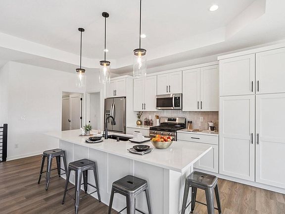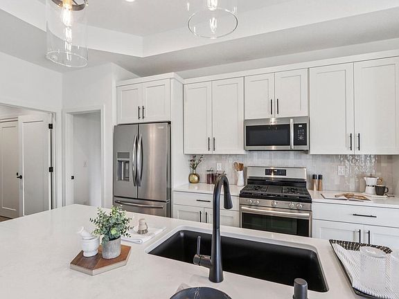 Generously sized and simplified everyday living spaces are at the heart of this open-concept ranch home. The impressive kitchen is designed with plenty of cabinetry and counter space, a pantry, and an island that doubles as a snack bar with wraparound seating. Adjacent is a dining area surrounded by windows and a patio door, while the spacious gathering room features a gas fireplace and vistas through a bank of windows. The split-bedroom concept places the secondary bedrooms and hall bath on one end of the home while secluding the primary bedroom on the opposite end of the home. Rounding out the home is a spacious mudroom with a bench, closet, and room for laundry appliances. Home is completed.