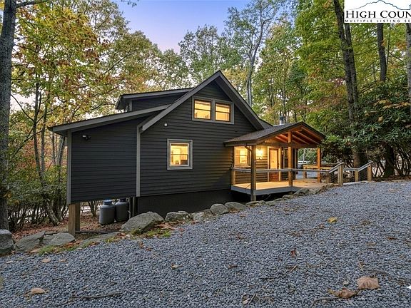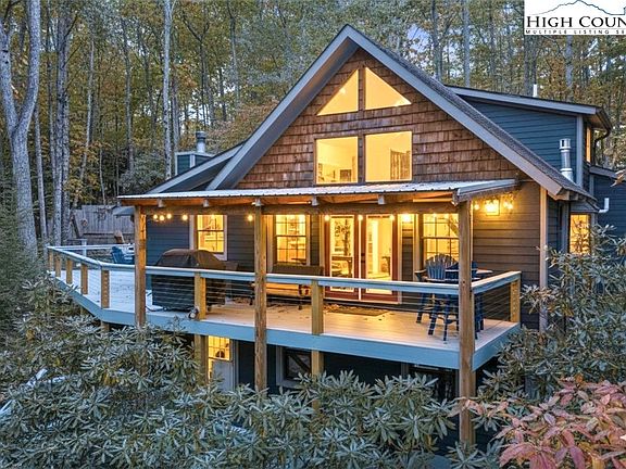 Experience the pinnacle of Beech Mountain living at "Stay La Vie," an exceptional 3 BEDROOM - 3 BATH beautifully updated home where luxury and seclusion converge. Nestled on 1.95 private wooded acres, this home delivers the peaceful mountain escape you've been dreaming of and over 1500 sq ft of outdoor decking! Step inside and be greeted by the warm elegance of the main floor. Soaring vaulted tongue-and-groove ceilings crown the spacious family room highlighted by a gorgeous stone gas log fireplace and rustic wood flooring. The adjacent dining area flows seamlessly into the gourmet Chef's Kitchen with exposed wooden beams, a gas range, copper farmhouse sink & a 2nd gas log fireplace perfect for setting the mood for entertaining. The main-level primary suite offers a serene retreat, featuring a spa-inspired bathroom with a walk-in shower. The interior flow is matched by the exterior's appeal with 2 covered rear decks perfect spots for relaxation. Guest accommodations are thoughtfully arranged across two levels: a charming upper-level loft with a private en-suite bath and a lower-level suite that includes a full bath plus flexible bonus room (furnished with a twin bed). The home is offered beautifully furnished with minor exclusions, making your transition to mountain living immediate and effortless. Also you can purchase a membership to the Beech Mountain Club which offers a wealth of member only amenities including golf, fine dining, pickleball/tennis courts, a fitness center and outdoor pool. "Stay La Vie" is a true Beech Mountain gem that will leave you in awe! Don’t miss your chance to call this stunning property home—this is mountain living at its finest!