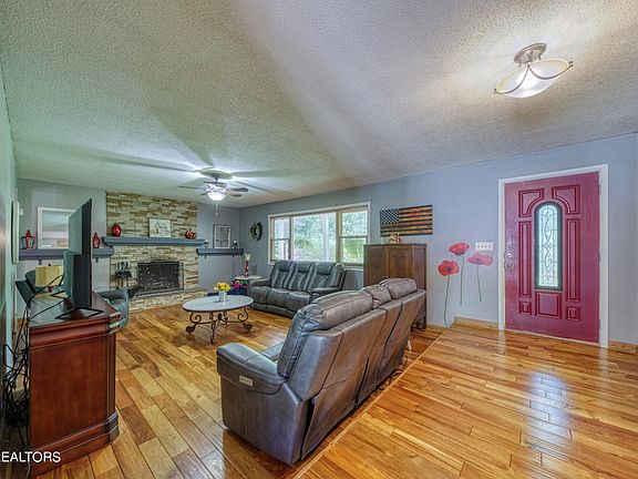 Mini-Farm on beautiful private acreage; year round creek; wet springs; 3rd bedroom is in basement with closet in attached office; 12x25 deck; back also landscaped; fencing on 3 fields; 3 stall barn has loft; 3 bay shed; extra outbuildings; stone fireplace in LR; wood stove in 3red BR or TV room; leaded glass front door; windows-2001; kitchen - 2002; workshop, off attached carport has electricity; bonus room is a basement office; washer/dryer in separate laundry room. More than enough acreage for animals and gardens.