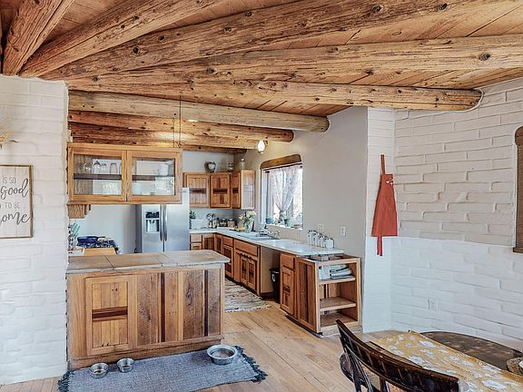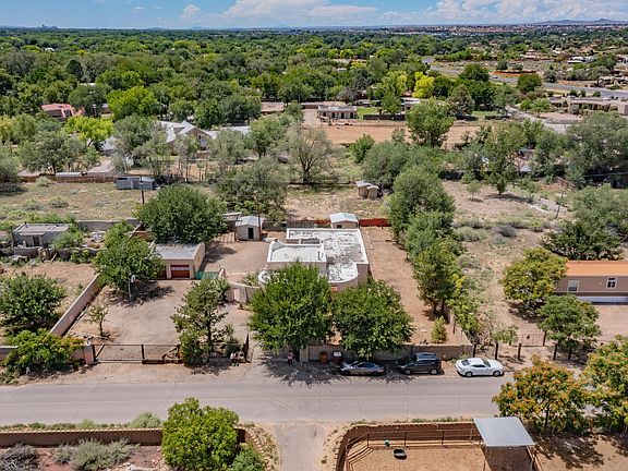 Wow, Great price cut on this beautiful custom home built by local Artisan's in the late 80's. Adobe on all exterior walls for incredible comfort with heating/cooling sound and Aesthetics to this property. The exterior Adobe walls are all capped with Wood Bond Beams allow ability to add a second floor. The craft's man care and skill show in the Cabinets, Walls, Bond Beams, Viga/tongue and grove Ceilings, Corbels. Hand Made doors and screens. Concrete and wood floors touch off this home. Bare floors enable any surface to be done. The yard has several different areas for Gardens, animals, cars/trucks, toys all surrounded and secure. Irrigation ditch presently abandoned (NMRGCD TO VERIFY IRRIGATION RIGHTS ) Quite street also;) Easy access in and out of Corrales.