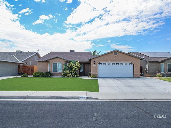 Calling all buyers! This 4-bedroom, 2-full bath home is move-in ready, with elegant finishes and attention to detail displayed throughout. This prime located home is spacious and inviting with its large living room, open dining room, and a kitchen appointed with newer stainless steel appliances and solid countertops. Tiled floors through-out with carpet in the four bedrooms. Primary bedroom features a walk-in closet. 2-car garage is attached. Dual pack installed in 2019, and new water heater in 2018. Front 'lawn' is pristine artificial turf for clean and crisp curb appeal. Primary bedroom opens to a nice shady patio and landscaped backyard with cement walkways to enjoy those cool desert nights.