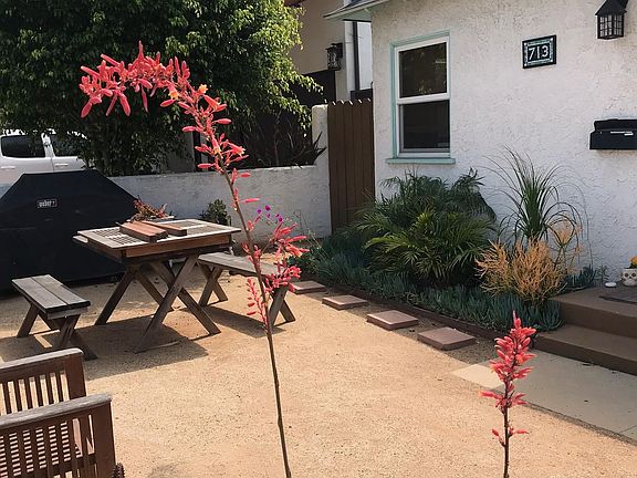 Lovely, bright one bedroom/one bath around the corner from the beach (side by side duplex). Cute front yard with decomposed granite and succulents. Appliances included. There is abundant, non-metered street parking, and a private gated storage area along the side of the building for bike storage, etc. Available August 1st or sooner. Must have good credit and references. Thanks. month to month