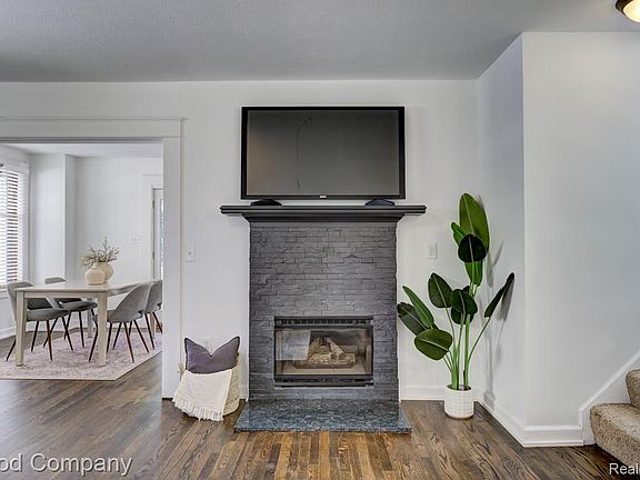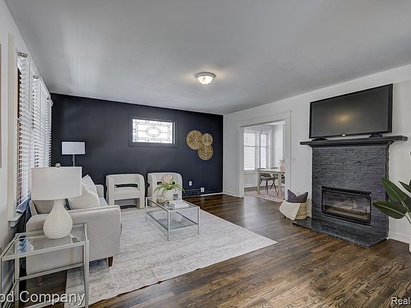 Matterport virtual walkthrough available on Homes. Classic Arts & Crafts style gem just steps from downtown Royal Oak, offering the perfect blend of timeless character and thoughtful updates. A warm yellow front door welcomes you onto the spacious covered porch, surrounded by lush landscaping. Inside, the bright entry living room features rich dark hardwood floors, a striking gas fireplace, and beautiful leaded glass windows. The formal dining room opens directly to the large back deck through French doors. The kitchen is both functional and stylish with tile floors, granite countertops, and plenty of cabinet storage. A convenient half bath completes the main level. Upstairs, three generous bedrooms share a beautiful bath with elegant tile work and classic finishes. The clean basement adds finished space for a home office, a laundry area, and extra storage. Out back, enjoy a private fenced yard with a raised deck, pergola, storage shed, garden beds, and vibrant plantings. Walk to your favorite Royal Oak shops, restaurants, and local parks. Welcome Home!