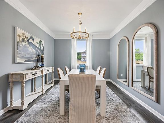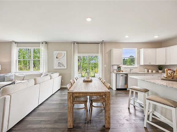 Your opportunity to own the Rose Hill's showcase home! Welcome to the Hanover, offering open-concept living space designed to meet your family’s needs. The main level features a combined family room and casual dining area, creating a spacious area great for entertaining and daily activities. The kitchen boasts a large center island, a walk-in pantry, and ample counter space, making it ideal for cooking and gathering. A formal dining room and office provide additional spaces for both work and relaxation, while a convenient powder room completes the main floor. Upstairs, an additional living space provides even more flexibility, whether you need a home office, play area, or entertainment room. The primary suite is a true retreat, featuring a large walk-in closet and a luxurious bathroom with separate vanities and a private water closet. The second floor also includes a laundry room, a full bathroom, and three additional spacious bedrooms, ensuring plenty of space for the whole family.