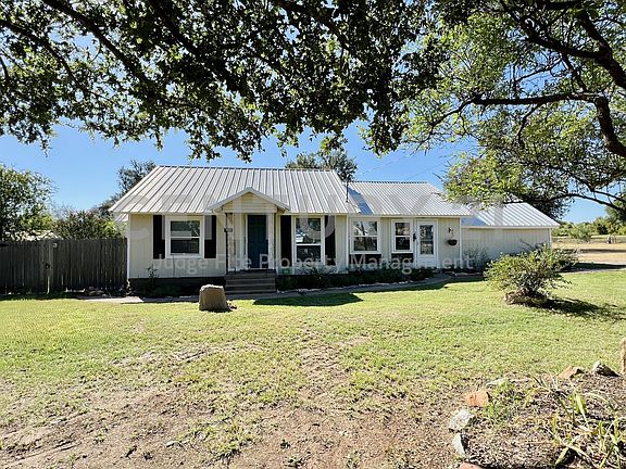 Completely renovated 2/1 in Granbury nestled on oversized .3 acre lot. This welcoming home is loaded with upgrades and is move-in ready. Recently replaced: refrigerator, range, washer, dryer, water heater, microwave and windows. Also, recently added: luxury vinyl plank flooring in FR, BR's kitchen looks sharp, pure water osmosis systems at sinks for safe & healthy drinking water, exterior & storm doors provide a welcoming outside look & allow cool breezes in, alarm provides security on all exterior doors & windows and fire protection, and dimmable recessed lights in the kitchen. A separate room with vaulted ceiling and lighted ceiling fan provides flexible space as a sunroom, playroom or office. Bedrooms have lighted ceiling fans, rebuilt closets and the primary has 5 large windows making it airy & bright. Bathroom has been renovated and offers closet space. Owner provides wall-mounted LG 50" LED 4K UHD Smart webOS TV. Attached room provides over 100 sf of storage. Breathe easy with a MERV11 Allergen Defense HVAC-AC 5" Filtration System. Use your app to control the smart home range, thermostat & water heater. The landscaped yard has mature trees & planted areas-watered by an automated sprinkler connected to a well. Completely fenced back yard has large easy access double gate for boats, RV's & trailers. Sand fire pit is surrounded by 4 local craftsman-built wood chairs. An old-fashioned clothesline allows the sun & breeze to dry clothes. Great location: only 1 mile to historic downtown, less than a mile to the Brazos River & to Granbury hospital and 2 minutes to Highways 377 & 144 with a huge open lot next door. Driveway easily accommodates 4 vehicles. The owner provides over $400/mo of services including lawn & sprinkler maintenance, HVAC filters, pest control, alarm monitoring, lawn treatment & more. Come check out why you'll enjoy living in this newly renovated home. 2 dogs under 25lbs allowed with owner approval. Owner will maintain use of storage shed.