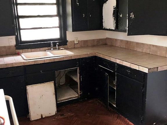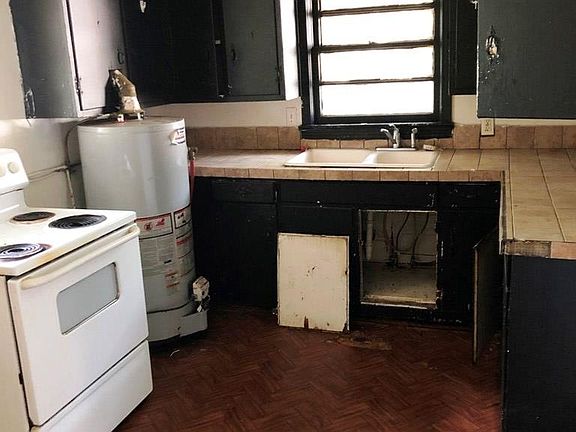 All brick home, 3 BR/1 BA needing some love. One room has an opening that a door/frame would fit in and adding a small closet would make this a 4 BR. Includes range & water heater in kitchen along with laundry hookups. Central AC appears to be electric cooling and gas heat. Fenced backyard with covered porch.