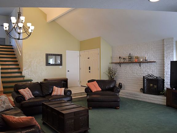 Deeter built 5 bedroom, 3 bath home. Tiled entry with large chandelier hanging from vaulted ceiling. Spacious living room with fireplace and large windows. Kitchen features newer cabinetry, solid surface counter tops with seamless incorporated sink. Family room includes tiled flooring, a second fireplace and newer sliding glass door to back covered patio. Roomy indoor laundry room off of the garage. Downstairs features one guest bedroom and a 3/4 bathroom. Three guest bedrooms are on the second story along with the master bedroom. The guest bedroom to the North-West has access to the attic for a large amount of storage space. Master bathroom has been updated, includes a double vanity, a large walk-in shower and jetted tub. Textured ceilings throughout. Dual Cooling. Finished garage. Large back covered patio, chicken coop, swing set and outside sink. RV parking. Security system. Solar (HERO lien) to be assumed by the buyer.
