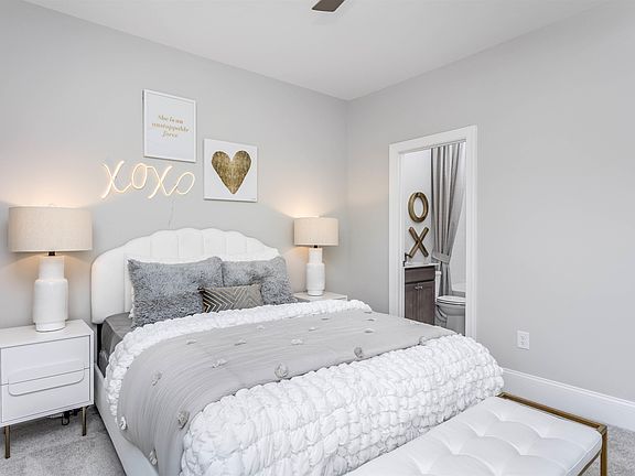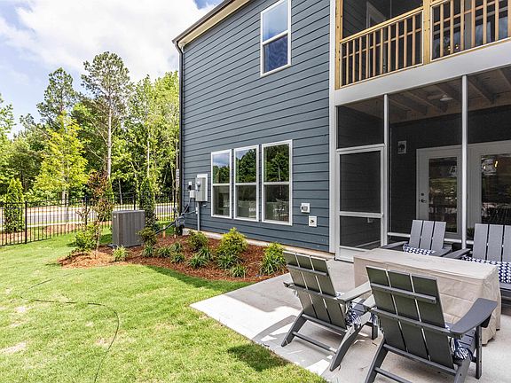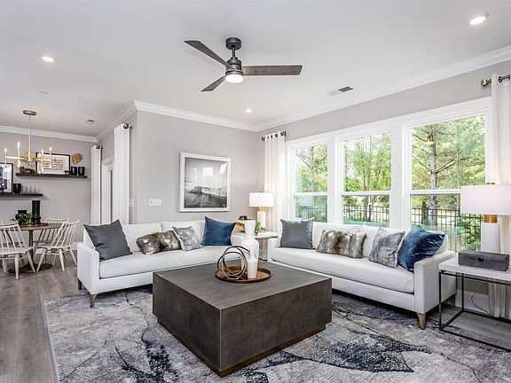 This end-unit, open floorplan Fairfax offers a beautiful formal foyer and dining area; this home also features a chef's kitchen with an expansive island, white cabinets with Lyra quartz countertops, white granite composite sink and gas SS Kitchen Aid appliances! Entertain in the spacious gathering room with a stunning linear fireplace and over-sized windows for lots of light! Relax in the amazing Owner's Suite featuring a sitting area and a great screened-in deck to enjoy morning coffee! Both of the spacious secondary bedrooms have en suite baths; bath 3 has a walk-in shower! Enjoy the outdoors from your screened-in porch overlooking a professionally landscaped yard!