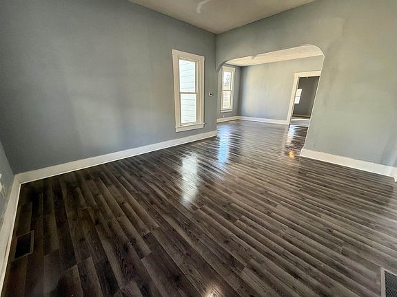 This affordable three-bedroom, one-bath home offers nearly 1,200 square feet of comfortable living space and has been thoughtfully updated. As you enter through the front door, you’re welcomed by a spacious living room that flows seamlessly into a dining room, both featuring brand-new laminate flooring. The kitchen has been refreshed with new vinyl flooring, kitchen cabinets, and countertop. All three bedrooms boast new carpeting for added warmth and comfort. The home has received significant upgrades, including a new roof and a new HVAC system with central air conditioning, ensuring year-round efficiency. Fresh paint throughout the interior gives the home a clean, modern feel, complemented by some new siding and several new windows.