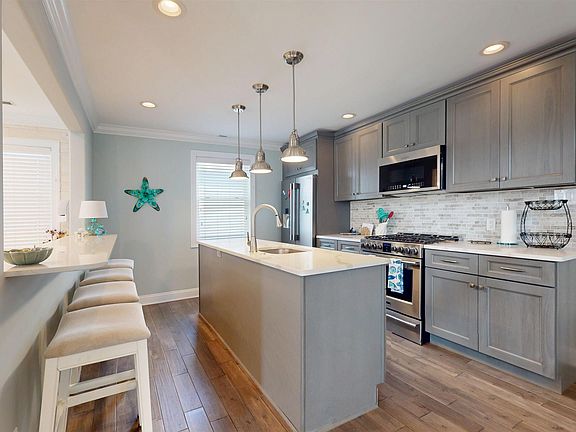 Exquisite Coastal Living at Its Finest ! 713 W Brigantine Ave Experience the pinnacle of luxurious coastal living combined with an exceptional investment opportunity at 713 W Brigantine Ave. This stunning 5-bedroom, 5-full bathroom residence, completely rebuilt from the studs in 2020, offers unparalleled modern amenities and an unbeatable location just 200 steps from the pristine 8th Street South Beach. Step inside to discover a meticulously crafted interior boasting brand new flooring, new sliding doors, and a seamless flow throughout. The gourmet kitchen features new, top-of-the-line appliances, perfect for culinary enthusiasts. Entertain with ease in the dedicated wet bar area, or take the party outdoors to one of several incredible spaces. Enjoy breathtaking ocean views from the spacious second-floor deck, or ascend to the rooftop deck for panoramic vistas of the island. This smart home-capable residence is equipped with smart switches, a sophisticated alarm system, and a new HVAC system featuring ultraviolet bacteria removal for optimal air quality. A tankless water heater ensures endless hot water on demand. Outside, you'll find new fencing and new decks with durable fiberglass, all designed for low maintenance and lasting beauty. A large driveway provides ample parking for up to three vehicles. Adding to the allure is a newly detached garage, completely remodeled in 2024, offering a versatile living area, an additional bedroom, and a full bath – perfect for guests or extended family. Located in the vibrant center of town, this property is not just a dream home but also an outstanding short-term rental investment, promising significant returns. Enjoy being minutes from the excitement of the Atlantic City boardwalk and nightlife, and just a short drive down the Parkway to explore the charming towns of Cape May, Wildwood, and Ocean City. Don't miss your chance to own this turnkey coastal masterpiece!