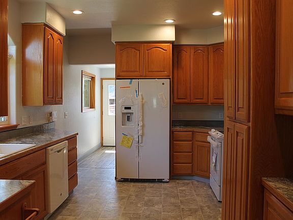 Beautiful Craftsman/Georgian style home on oversized double lot located in Hermiston, Oregon. The home is newly remodeled throughout. A spacious enclosed front porch leads to an oak entry way that opens to a formal living and dining area with oak floors and craftsman style windows and door trims. The kitchen has colonial oak cabinets with all new counter tops, vinyl floors, refrigerator, stove/oven, double bowl cast iron sink, garbage disposal, and pullout spray faucet. Back door entry way has a tile floor and off the hallway is a full bathroom with all new fixtures and a cast iron bath tub and newly tiled tub/shower area. Leading up the second floor is a freshly painted and newly carpeted staircase where you will find three spacious bedrooms all with walk-in closets. You will also find a second full bath with all new fixtures and a new steel/enamel bath tub with newly tiled tub/shower area. The home includes a basement area where you will find a large shelved storage room including existing chest freezer. There is an adjacent laundry room which includes existing washer and dryer. Also located in the basement is a large separate mechanical room which houses a water heater installed five years ago, furnace inspected and cleaned recently. There is a new air conditioner outside the home installed in August of 2020. New 1-inch water line installed from city meter to water shutoff valve of the home. New plumbing pipes and electrical wiring and receptacles throughout the home. Property includes 10x16 detached well house with a shallow well used for irrigation and 18x26 detached garage. Fully enclosed backyard area, 10x12 covered wood deck and wrap around driveway.