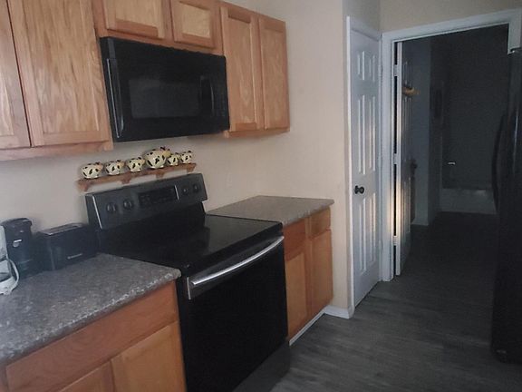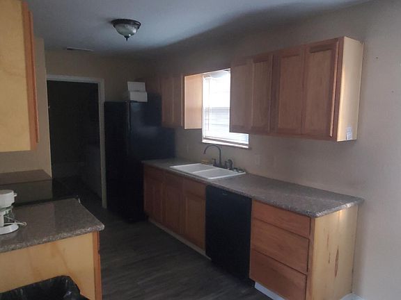Cute spacious newer home built in 2018 for rent with 1 bedroom 1 bath and nice size storage shed in the back yard for your use. Home sits on 1/2 acre. Large living room that could be used as dull space along with dining area off kitchen. Nice covered wood porch across front of house to have morning coffee or to wind down in the evenings after a hard days work. Home has black appliances including oven/range, side by side refrigerator, built in microwave over stove and washer and dryer. Wood laminate throughout with carpet in bedroom. Bedroom had double closet and ceiling fan. Home has plenty of extra storage space throughout.