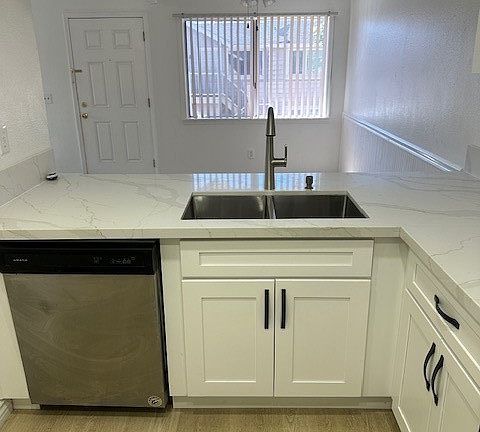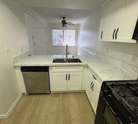The owner just finished the entire renovation of this condo. list of upgrades includes brand new vinyl flooring in the entire condo, brand new cabinets, brand new quartz countertop, brand new vanity with quartz countertop, new baseboards, new paint in entire of the condo, brand new faucets and sinks. also, less than 18 months new washer and dryer, dish washer, microwave, and garbage disposal. Ready to move in upstairs corner unit with large balcony, very private with only one sharing wall, no one living below or above the unit. The condo has two large bedrooms and it's conveniently located near schools, park, grocery market, restaurants, and the lake of course. Commute friendly near both 74 and 15 freeways. Very open and airy feeling with generous living space and oversized kitchen and lots of cabinets and counters. The unit also features a large dining area that leads to the spacious living room and a large balcony with views. This condo sits on top of it's own one car garage, and also has one assigned parking space.