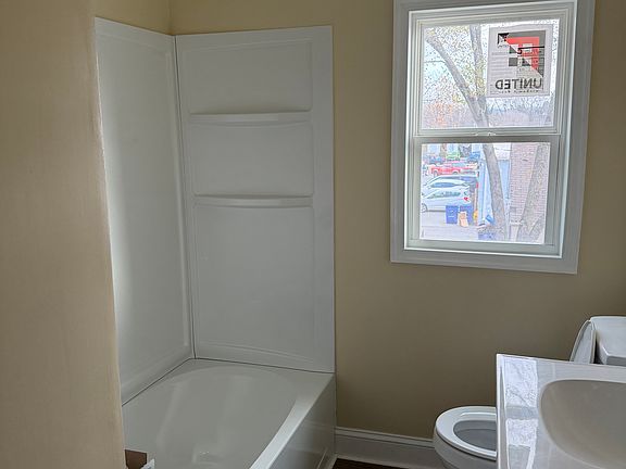 All brick townhouse, two bedrooms, one full bath + unfinished walk-out basement with a washer and dryer hook up. Brand new kitchen and bathroom, hardwood floors. Oil heat, everything else on electric. Property front parking, 4 people max. Tenant responsible for utilities - electric, trash, water, and oil.