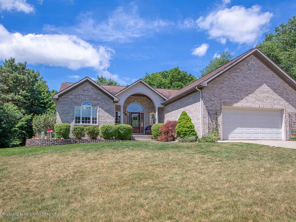 Wonderful offering! Stunning walk-out ranch setting high up on a spacious 3.9-acre private lot with amazing views in every direction. Enjoy the spacious foyer with hardwood floors and open staircase leading to the professionally finished lower level including 2 large bedrooms, full bath, and spacious rec room with sliders leading out to the over-sized stamped concrete patio with sunsetter awning and screened-in porch. Lovely study. The fantastic kitchen with over-sized eating bar, beautiful oakcabinetry, and roomy oak pantry, opens to the informal dining area with hardwood floors and wet bar with built-in wine rack. Beautiful 4 seasons room overlooking the lovely wooded lot, with a screened porch underneath! Custom 3-sided gas fireplace. Half bath. Solid 6 panel interior doors.