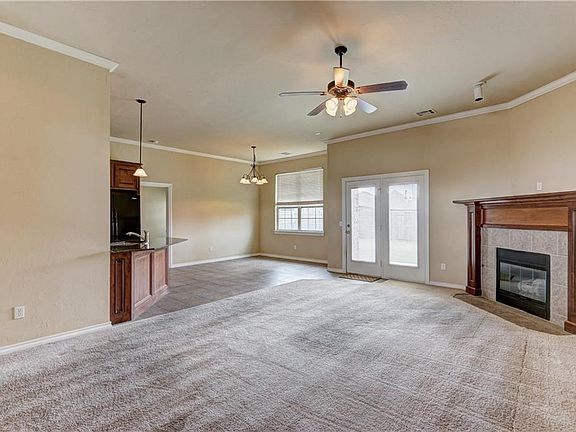 This is a darling 3 bed and 2 bath, 3 car garage in highly sought after Lakewoods Addition! The home offers a spacious open concept Living area with beautiful corner fireplace! Kitchen is very spacious with plenty of cabinet storage and counter top space on a dark granite that compliments the kitchen colors very well. Large Master bedroom is tucked away from the other bedrooms with private bathroom retreat. Flow through huge Australian style Walk in Closet, Separate Jacuzzi Tub, Hallway Shower, and double sink vanity! Across the house you'll also appreciate two additional bedrooms, hallway storage, guest bathroom complete with granite counter tops and tub/shower combo. Spacious backyard with patio, what's not to love? Close to everything Moore and OKC has to offer at an awesome price!!