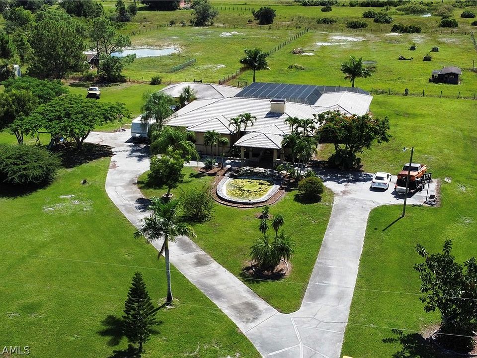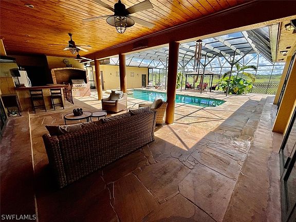 Prime Golden Gate, Naples real estate! This 5Br 5Ba pool home sits on over 5 Acres of fenced in land. The interior has tile floor throughout, crown molding and beautiful wood beams on the ceiling to complement its inner farm house feel. Three bedrooms have walk-in closets and their own full bathroom. The other two share a jack and jill full bath and reach-in closets. In the caged in patio, you'll find plenty of space to entertain family and friends while enjoying the pool and spa. The patio also includes an outside bar, kitchen, shower, and bathroom! There are three electric well pumps on the property - for the home, irrigation system and barn. Also, one manual well is located next to the chicken coop. Detached from the home you’ll find a concrete three car garage with automatic doors. Pictures could never do justice for this enticing paradise. Come view this gorgeous home before it is too late!