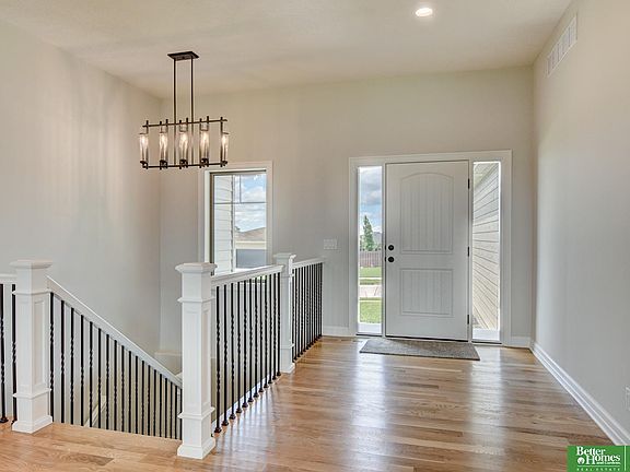 Welcome home to The Evelyn, 4 bedroom, walkout ranch floor plan by Legendary Homes. The custom open floor plan includes Gerkin windows, quartz countertops, stainless steel appliances, spa-like master bath with a walk in tile shower and pocket office off of kitchen. The Evelyn offers birch custom cabinets throughout the home and white oak flooring throughout the main living space. The basement is finished with 2 bedrooms, large entertaining area with walk up bar and walkout to the large backyard. The home also features passive radon piping, sump pump with sealed pit, sprinkler system, 2x6 exterior walls with blown in insulation, large covered composite deck with aluminum railing, patio and 3 car insulated garage. HERS Rated/Energy Star home. Bennington Schools, Neighborhood pool and walking trails.