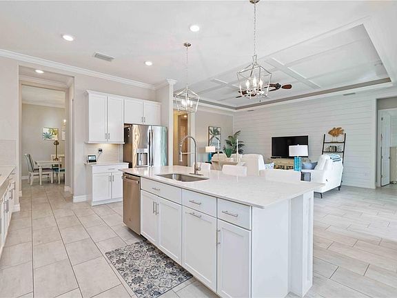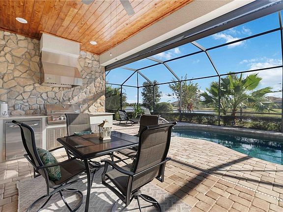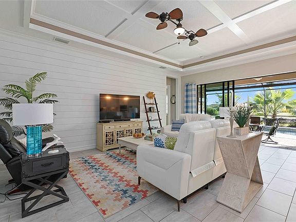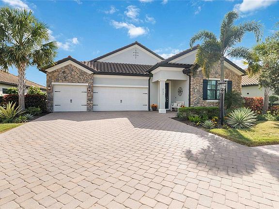 Located in the highly sought after Lakewood Ranch community of Country Club East, this exquisite residence has a view that is equal to none. The home features an open floor plan, 10’ coffered ceilings, high end custom finishes, and incredible amenities in the coveted Country Club East community. The heart of the home is the seamless flow between the great room, kitchen, and lanai areas. The pristine white kitchen features white cabinetry, upgraded quartz island and countertops, under-counter kitchen lighting, and GE Profile appliances. A cozy eat-in dinette off the kitchen overlooks the lanai, making it the perfect spot for casual meals and a beautiful view. The light-filled primary suite features tray ceiling and a large walk in closet with an organizer. The en-suite bath is a spa retreat with its dual vanities, garden tub, and a separate shower. The home features a split floor plan with three additional bedrooms and two bathrooms conveniently located in the front of the home, ensuring privacy for family and visitors. Throughout the home, you’ll notice custom features such as the kitchen island encased in wood, ship lap in the living and primary bedroom, crown molding throughout the house, 6 ceiling fans, hurricane-impact windows throughout the home, upgraded base boards, plantation shutters on all windows, a glass front door, and double moldings with wood slats on the tray ceiling in the living room. Step outside to the spacious lanai that is perfect for outdoor living featuring an outdoor kitchen with a grill and custom stone wall, ash wood ceiling, and a Storm Smart Hurricane Screen that offers security as well as providing additional shade if desired. The solar heated salt water pool with water features provides an ideal way to relax as you look through the Panorama screen. The home’s lakefront view offers stunning water views, creating a serene and tranquil setting. Updated and manicured landscaping enhance the home’s curb appeal. The three car garage provides extra space for vehicles and additional storage added overhead and with custom storage The garage has a 220 volt outlet for an electric car charger. The home is equipped with a Generac whole house gas generator and surge protector to ensure peace of mind and security. Country Club East residents enjoy exclusive access to The Retreat, a neighborhood amenity center boasting resort-style pool, fitness center, and billiards room. Additionally, the Residents Club offers another pool spa, and a volleyball court for residents to indulge in leisure and recreation. Location, location, location! Within minutes you’ll find easy access to I75, an enormous amount of restaurants, UTC with numerous shops, Benderson Park, walking trails, and serene parks. Thirty minutes away is downtown Sarasota and the world famous Siesta Key beach, Longboat Key, St. Armands Circle, Lido Key and even more restaurants and shopping. Please call today for your private showing.